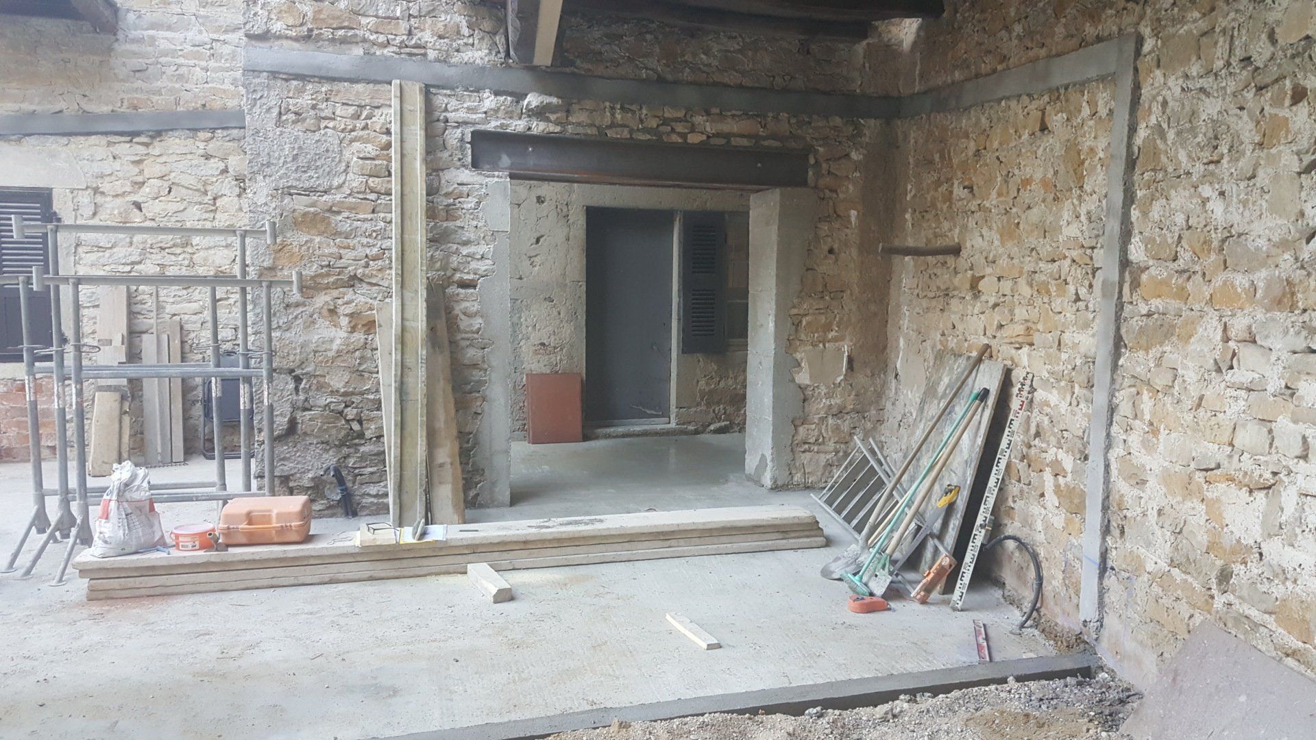création d'une ouverture ainsi que le balcon; l'encadrement autour de la porte fenêtre est en mode et nature finition grattée;
